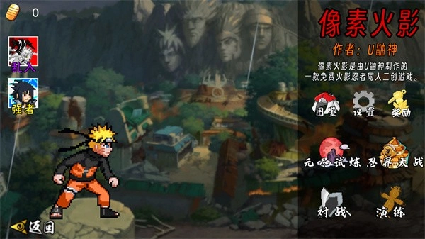 1、当你开启像素火影这款游戏后,映入眼帘的便是充满火影风情的初始界面,点击右上角的设置按钮,玩家能够按照自己的喜好,随心调整游戏音量的大小,让战斗的背景音乐恰到好处,还能根据自己的操作习惯,重新设置键位,找到最顺手的操作模式。