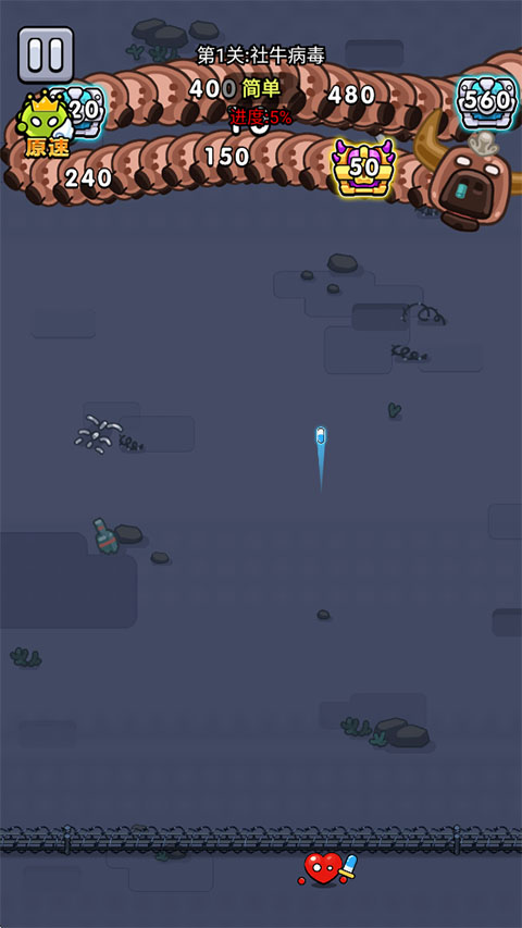 1、进入不服来通关官方正版游戏内,滑动屏幕来进行攻击。