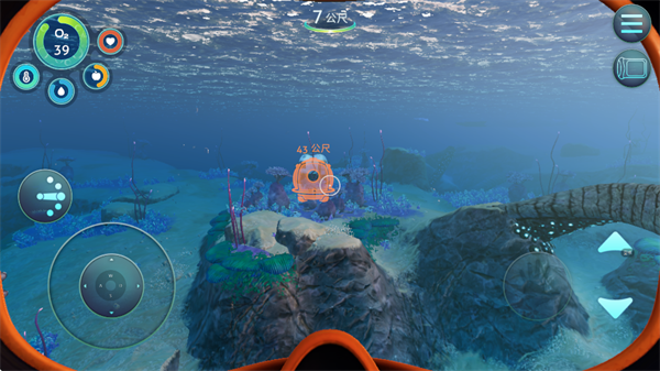 4、通过探索海底和采集材料升级装备,前往更深的海域。
