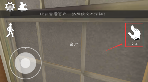 2、根据红框提示查看窗户,点击交互按钮继续。