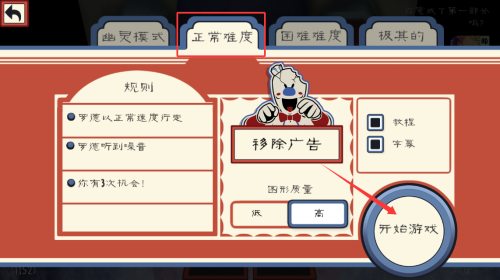 1、选择红框标注的正常难度,点击开始游戏按钮进入。
