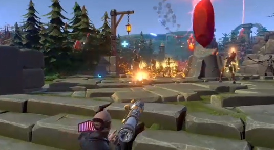 2、进入游戏之后,一共有两个模式推车模式和moba模式(moba未开放),进入游戏后环境的建模让我大为震惊,ui界面简单的游戏本以为游戏质量也一般,游戏环境质量特别高,但是人物建模有一点点一般,防御塔的质量也需提高一点点。