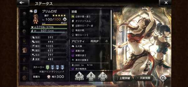舞娘,原作角色之一。舞娘的主要职能是给队友上buff,这点普姐做到了,有提升20%双攻的buff。也有本职业的乱四连扇可以削盾。