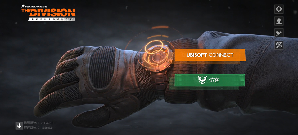 1、打开全境封锁曙光手游官方正版,首先注册账号登录游戏,或者选择游客登录;