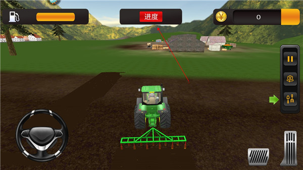 3、安装完成后,驾驶车辆前往田地边缘,行驶过程中按住右侧操作图标即可开始耕地作业。