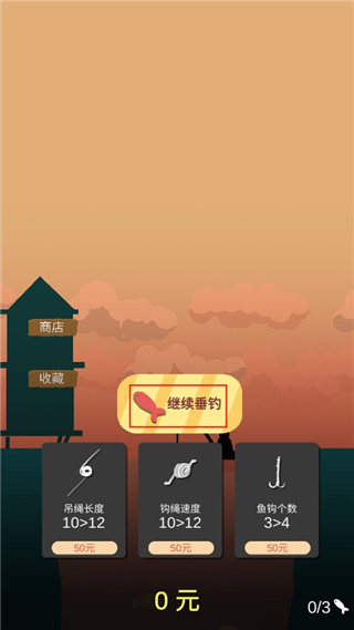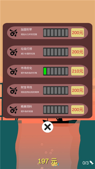 4、在主界面可对鱼竿的各项属性进行升级,包括强度、灵敏度和抛投距离等,提升钓鱼效率。