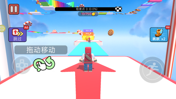 3、屏幕虚拟摇杆控制角色移动,躲避障碍物快速去冲刺。