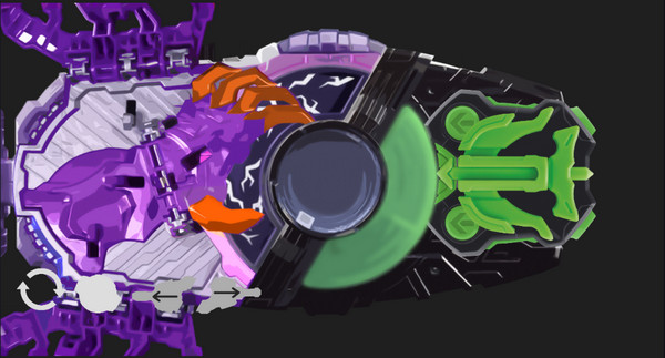 5、插入僵尸形态专属带扣,配合标志性的绿色能量光效,完整复刻剧中变身仪式;