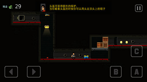 6、蓝色箱子中可获得头盔,佩戴后不仅能提供额外防护,还能用头部撞击上方箱子获取隐藏物品。