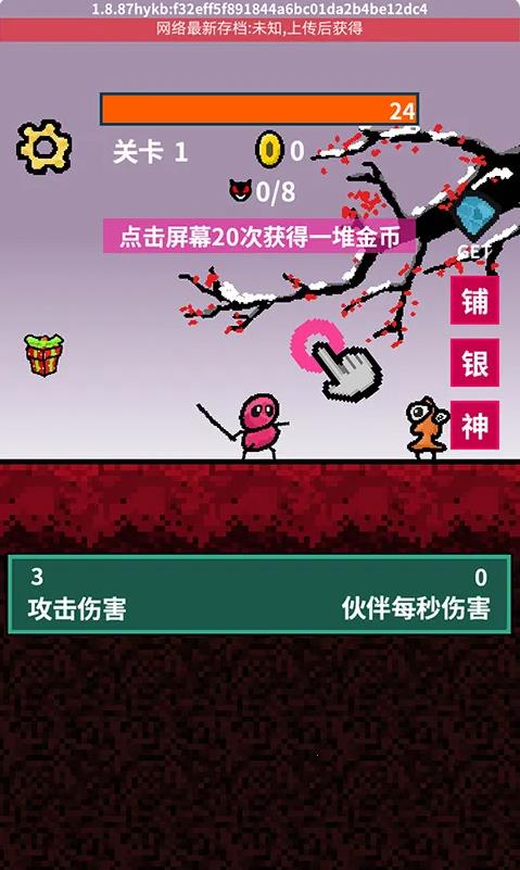 2、我们可以通过点击屏幕来攻击敌人,并且每点击屏幕20次就可以获得一堆金币,