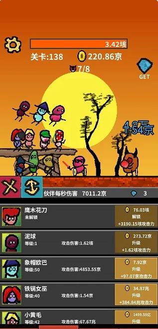 3. 满足条件可提升点击伤害、强化伙伴能力,新伙伴不断出现。