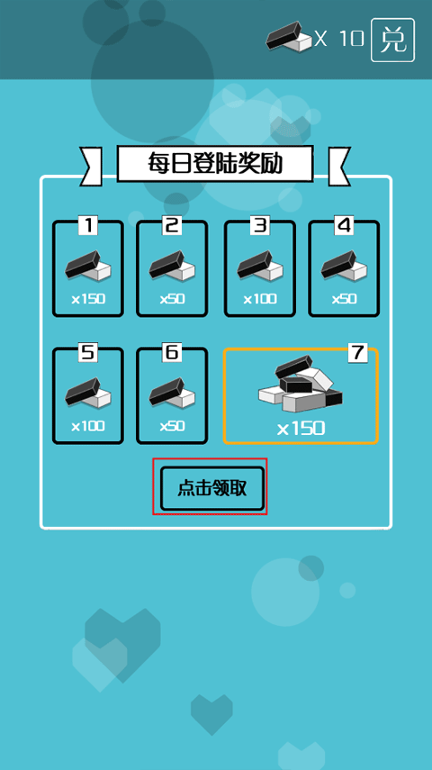 3、点击右上角的“兑”按钮,就会自动进入到广告观看阶段,当广告观看结束,就会得到160个砖块。