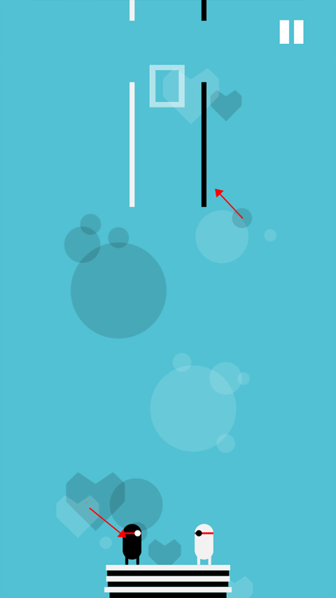 天空掉下来黑白条条你需要让黑条条掉到黑色圆蛋的头 白色掉到白圆蛋的头上,这样它们就会越来越高 但是随着他们越来越高 他们的动作与频率还有呼哈的声音就会越来越快这时候你必须把持好尺度速度 注意注意!
