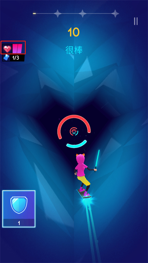 4、游戏过程中,通过左右滑动屏幕控制角色移动以完成节奏判定;