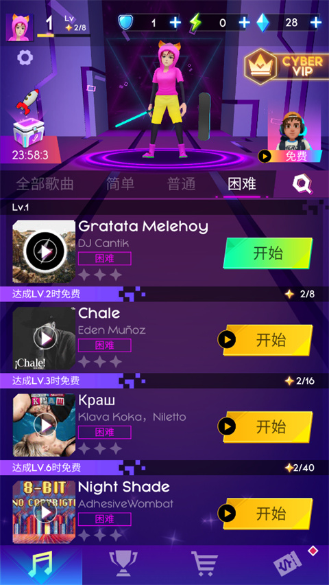 1、双击打开节奏骑士手游,进入主界面后可根据自身水平选择关卡难度;