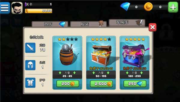 2、提升战斗力的第一步是选择趁手的武器。新手进入游戏后可免费领取装备宝箱,若运气较好开出极品武器,前期将轻松不少。游戏内武器种类繁多,自由搭配组合趣味十足。