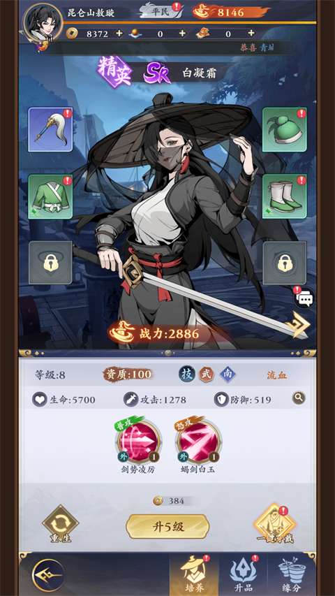 玩家们可以收集来自不同门派、拥有各异武学体系的侠客卡牌。每位侠客可通过【悟道】系统进行深度养成,提升境界、领悟绝学、淬炼经脉。
