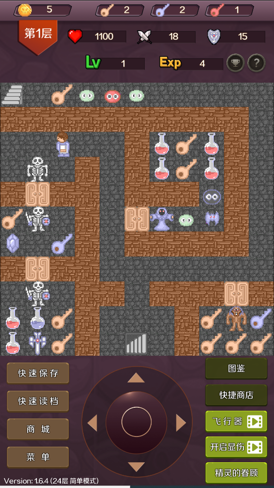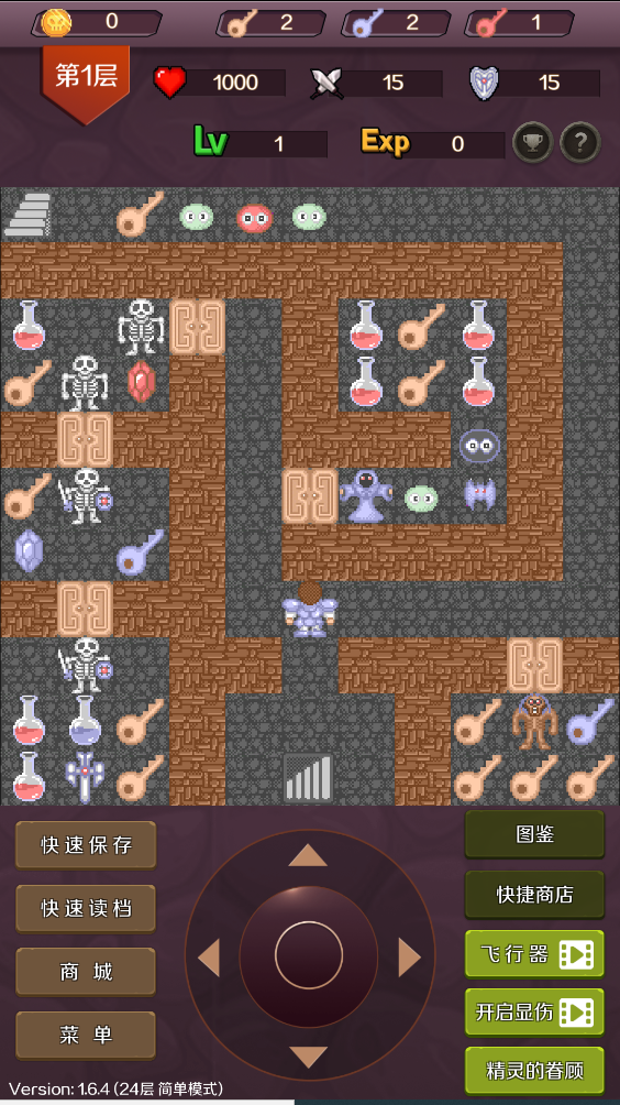16层左下大史莱姆上方是暗墙,右下幽灵右侧有暗墙,可以获得圣水