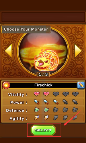 3、选中第一个怪物,点击下方绿色选择按钮。