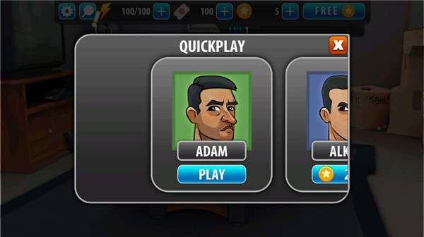 1、在主界面点击“QUICK PLAY”开始挑战,选择关卡后进入角色选择画面。