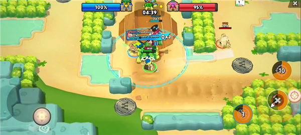 2、控制角色在地图中移动,长按攻击键移动方向攻击敌方英雄