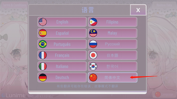 3、之后进入游戏主界面就可以看到中文语言的内容。