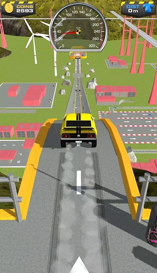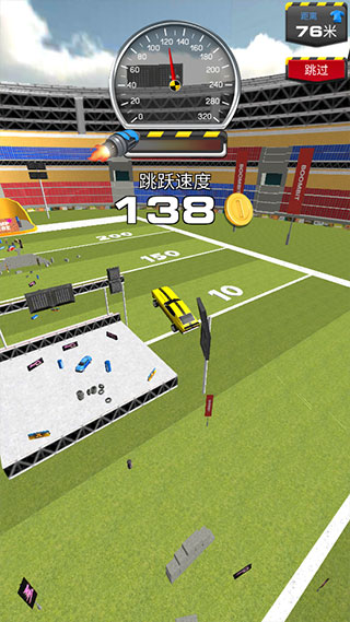5、控制赛车在斜坡赛道上漂移、跳跃,利用地形冲刺最远距离。