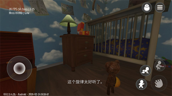 游戏室:游戏开始时,玩家身处一个色彩明亮、充满玩具的房间。这里阳光朦胧,氛围愉悦,是玩家与泰迪熊互动、玩捉迷藏和火车游戏的地方。