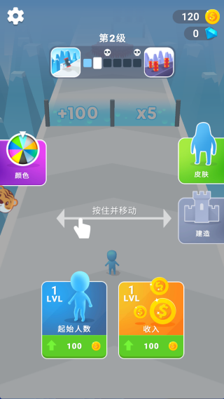 2、在每个关卡开始之前,玩家可以对初始的人数进行升级,也能提升关卡获得的收益。