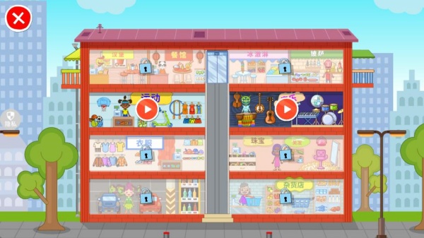 1、采用清新可爱的卡通风格,以百货商店为背景,营造充满童趣的虚拟世界,吸引宝宝注意力;