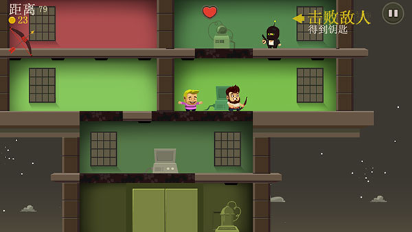游戏操作极为简便,仅需单手即可畅玩。通过上下滑动屏幕,玩家可控制角色在楼层间跳跃穿梭,灵活躲避敌人攻击的同时,还能主动撞击外星人、解救被困人质。新手教程清晰直观,让玩家迅速上手,享受高速对抗的快感。