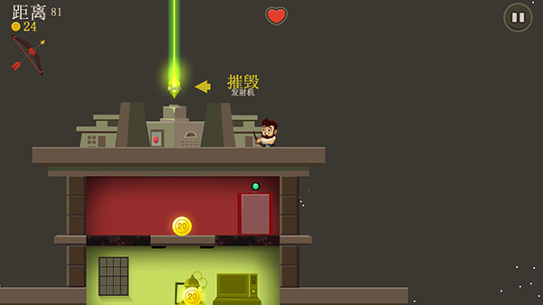 7、只要成功摧毁发射机即可通关,但需注意:若角色生命值归零,同样会导致游戏失败。