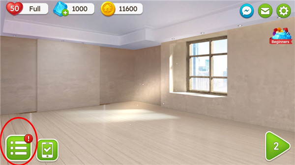 2、点击左下角的感叹号图标,即可进入房屋装修界面,开始个性化布置;