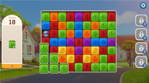 1、点击两个及以上相邻的同色方块进行消除,完成任务目标并收集各类实用道具。