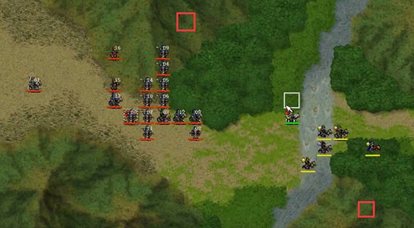 第三回合出场,但因中埋伏全体下降士气,不过我军上方的敌人会混乱,(主角虽然现在能力不行,不过手下还是杠杠的)先把上面清理掉。