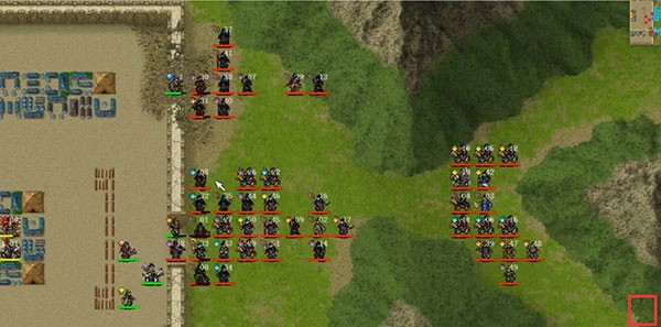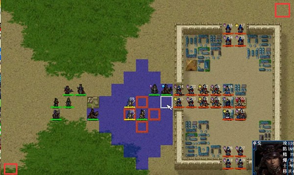 开场敌军降全属性!我军只有守城部队。只有上下 2 门口后退一格,公主支援上方,等我军大部队。