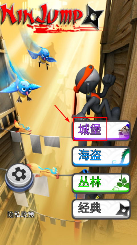 1、首先打开游戏,游戏内现有城堡、海盗、丛林、经典四种情景可以更换;