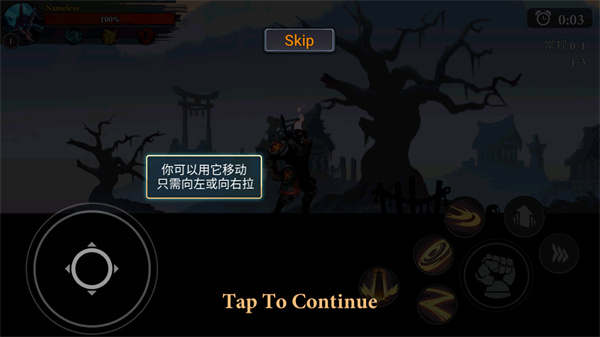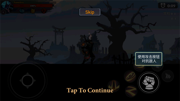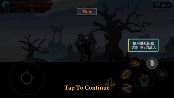 7、遇到空中敌人时,点击“跳跃”按钮腾空出击,实现立体打击;