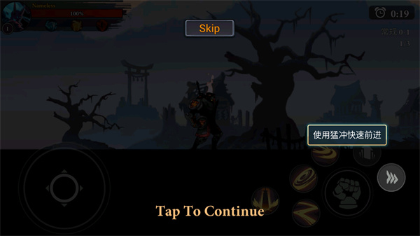 8、使用“冲刺”按钮可快速向前突进,用于追击或躲避;