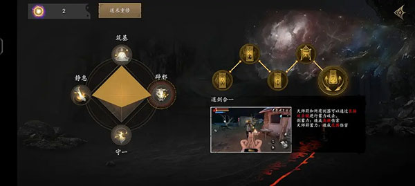 道术加点顺序建议如下:首先点满“静息”。该技能可有效应对血月下异常坚韧的小怪——除躺地敌人外,多数敌人都可通过背袭清除,包括罐子怪。点满后移动时无需蹲伏,配合闪避可实现隐蔽接近且不被发现。
