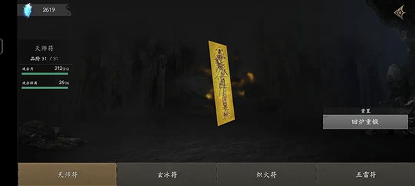 符咒方面,优先升级天师符。其余符咒如盘龙角等,仅需解锁基础功能即可,无需投入资源深度培养。