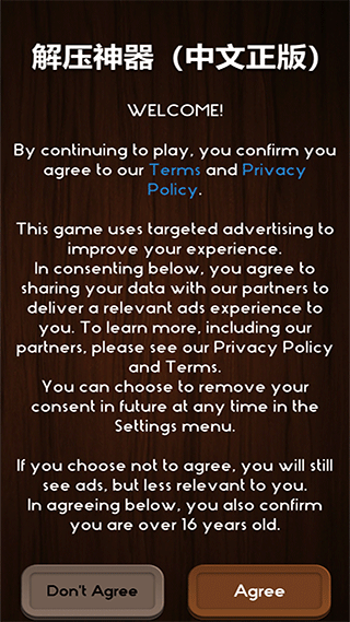 1、打开游戏后,首先点击“agree”同意相关条款。