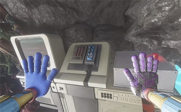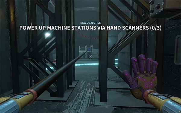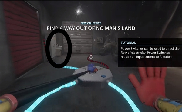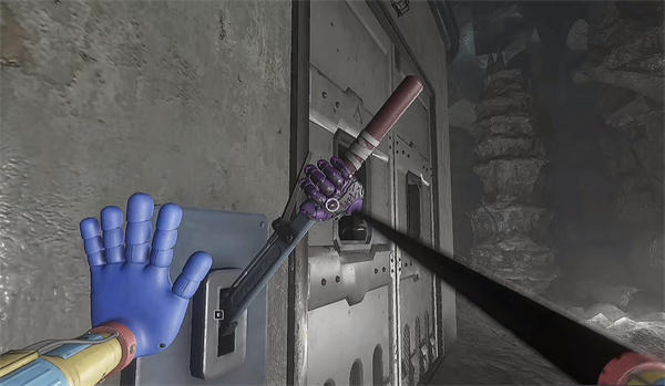 6、进入新区域后再次拉动开关,继续前进并使用蓝色手臂与前方装置互动。此阶段需依次触发三个开关,方可接通电流、打通出口。