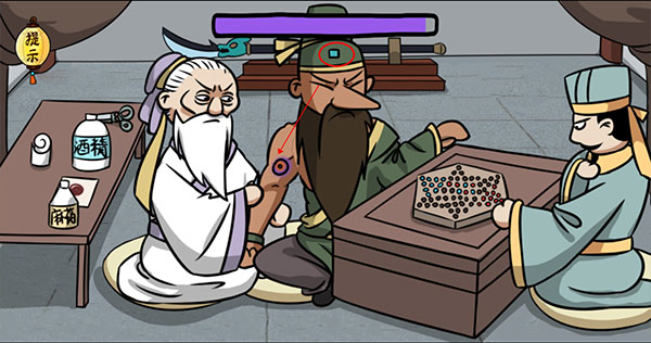 点击关羽帽子上的宝石,宝石会变成橡皮擦,用它“PS”擦掉伤口即可完成治疗。
