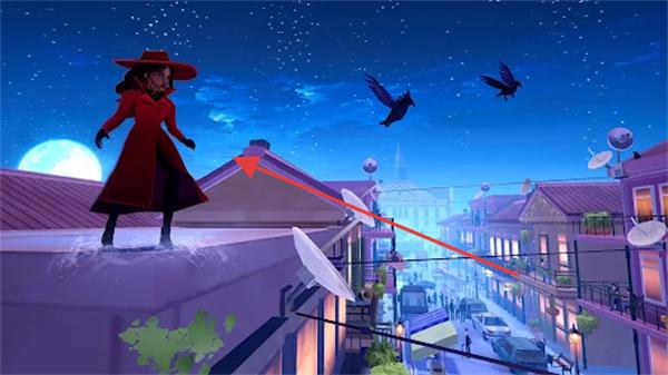 3、在屋顶等特殊场景中,按屏幕箭头指示方向(如指向相邻建筑)移动角色,顺利推进行动路线。