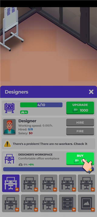 1、游戏初期应专注于基础建设,合理布置办公工位并招募核心员工,通过完成日常任务积累经验,稳步提升公司等级。