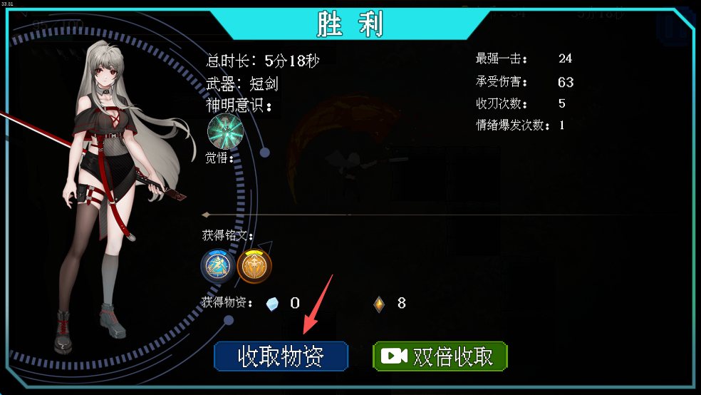 8、完成关卡后,点击屏幕下方的“收取意识”,完成关卡。
