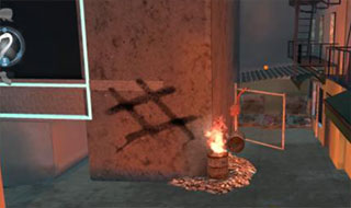 点燃后,地面会出现黄色光圈,即为目标放置点。将燃烧的面包放入圈内并后退,工厂大门随即开启,任务完成。