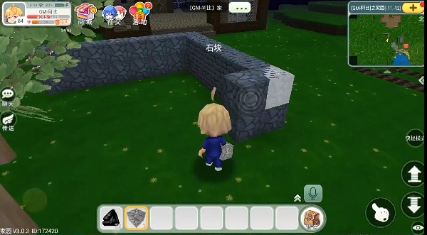 1、切换到石块,然后可以在这里堆起一个围墙。