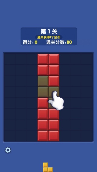 1、通过触控屏幕旋转和移动下落的方块组合,在底部的网格中完成横向或纵向的整齐排列。